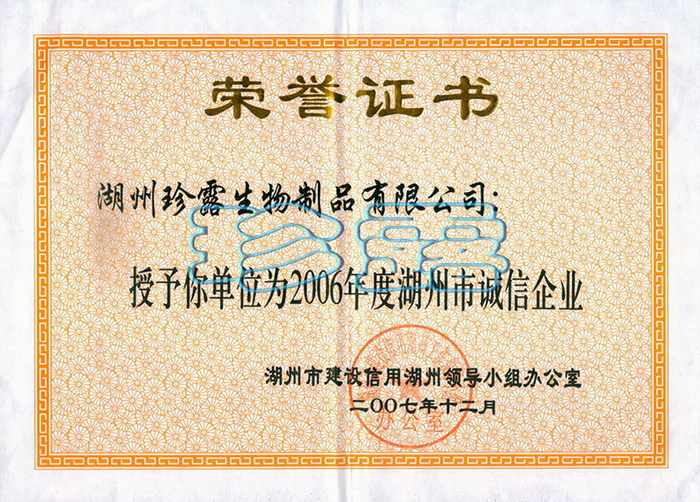 2006年湖州市誠信企業(yè)