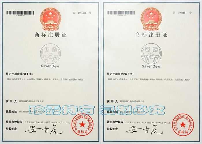 “銀露”商標(biāo)注冊證-第1、5類
